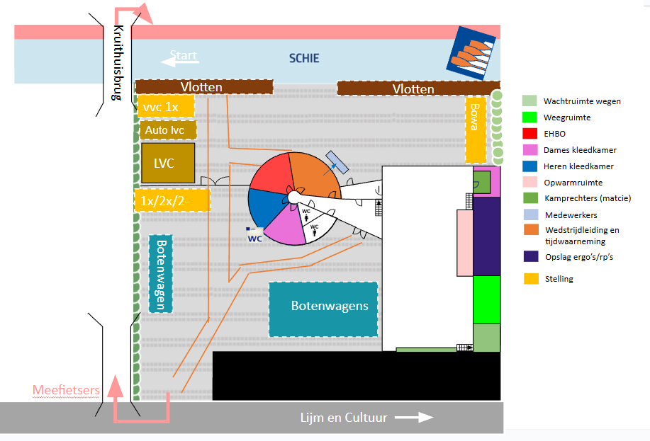 Als u aankomt met uw botenwagen bij de wedstrijd, neem dan contact op met +316 11153068 (Aafke Tilstra) of +316 21373247 (Roef Bekker). Let op dat het niet mogelijk is om tijdens de blokwisseling het terrein op te rijden of te verlaten met een botenwagen. Plan uw aankomst en vertrek zo dat het tijdens een blok is. U mag het terrein van Lijm en Cultuur betreden of verlaten met de botenwagen als de organisatie toestemming heeft gegeven.